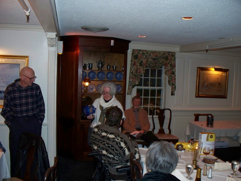 | Steve Litchfield explaining the rules. | Jean Callahan making her way back to the table with her selection. |