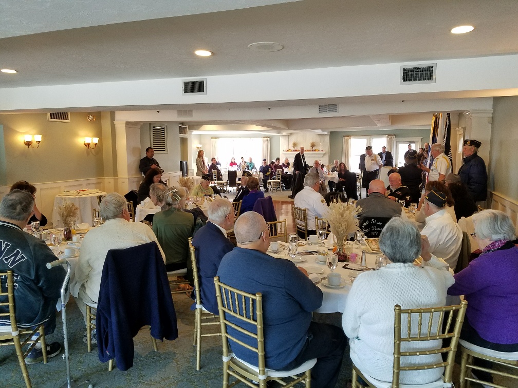 | Selectman Emeritus, Joe Norton, placing the wreath. | Flag Ceremony before the luncheon. |