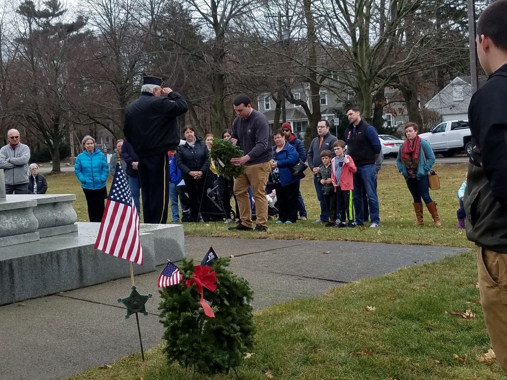 Ellenore Grossman a Korean war vet waiting in the back with the wreath. |