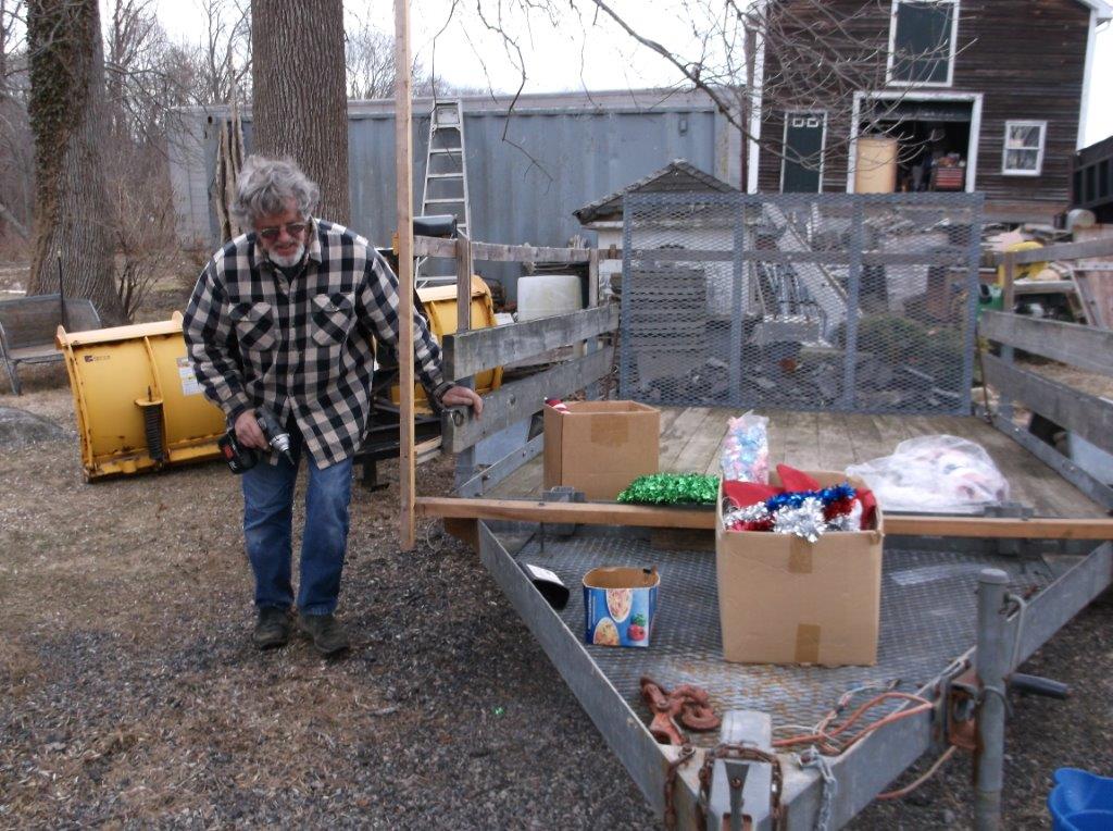 | Steve Litchfield and Bob Callahan getting the float ready on Saturday. | Before the parade started the group lined up for a photo. |